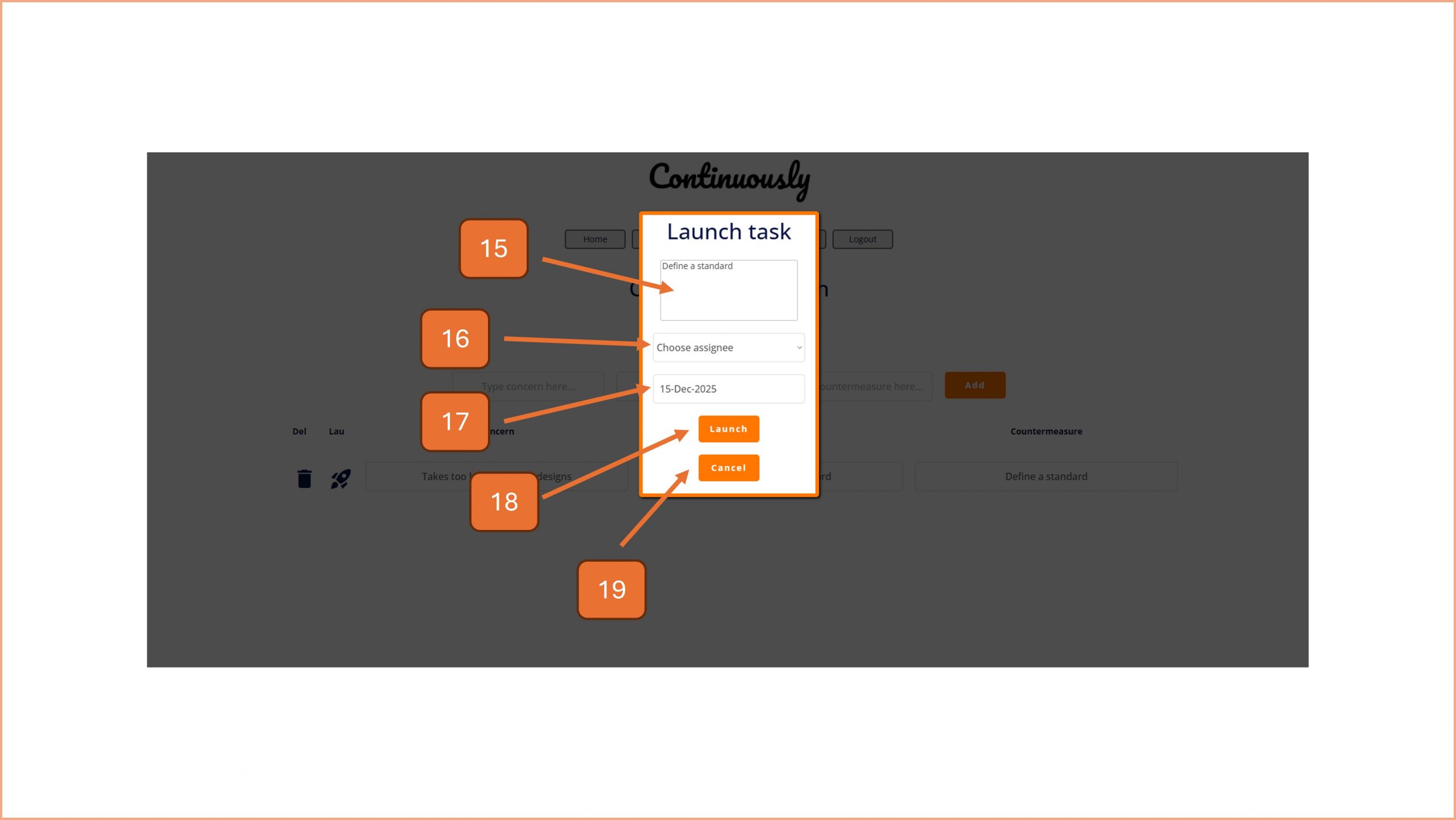 14. If you need to delete the concern cause countermeasure entry, click on the bin icon (see step 19).