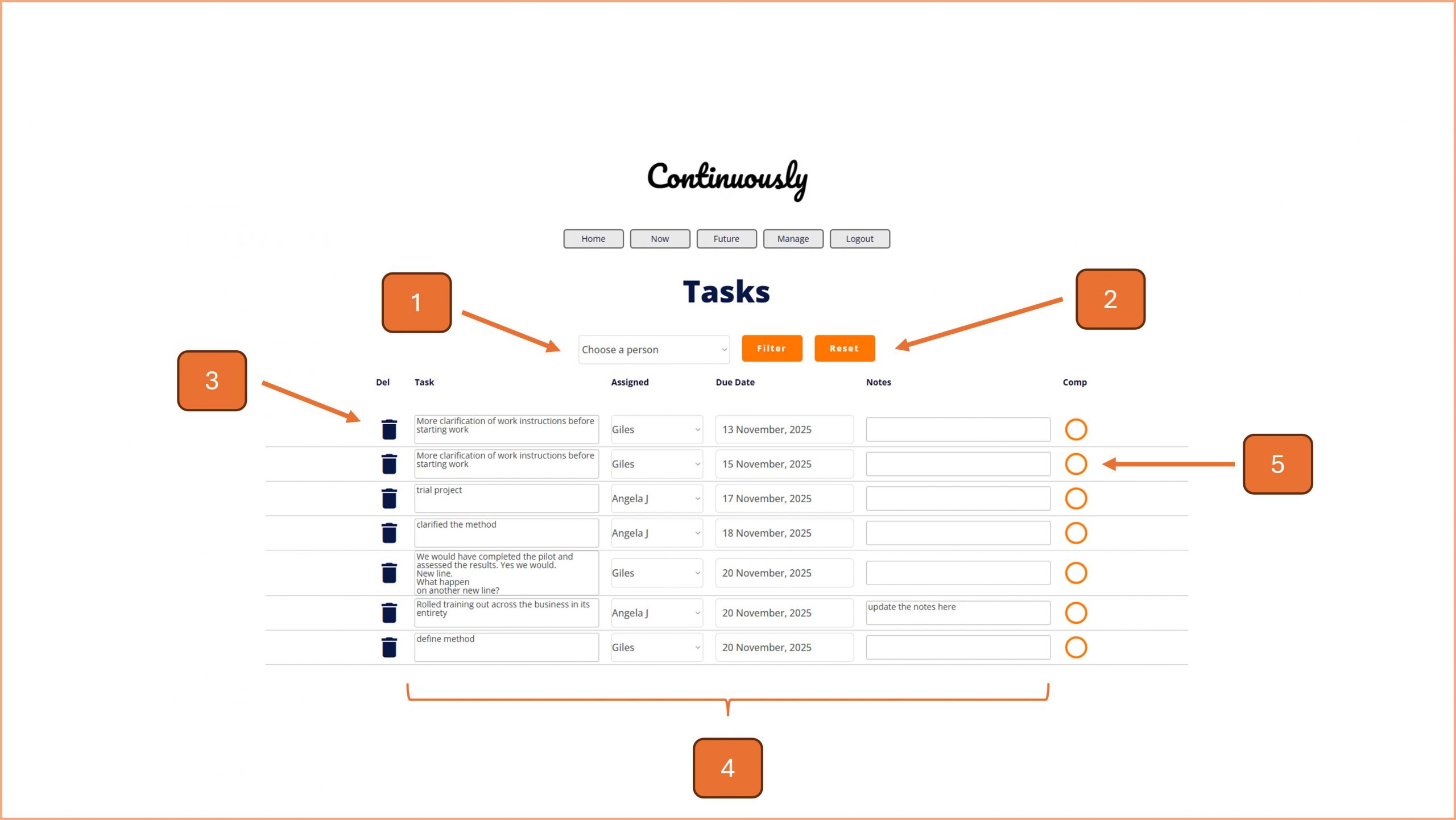 3. To delete a task, click on the Bin icon and follow the on screen instructions.